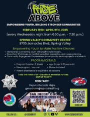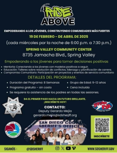 Join the San Diego Sherriff's Department in their efforts to empower youth and build a stronger community. Youth between the ages of 9 to 12 years old are invited to attend this free course.