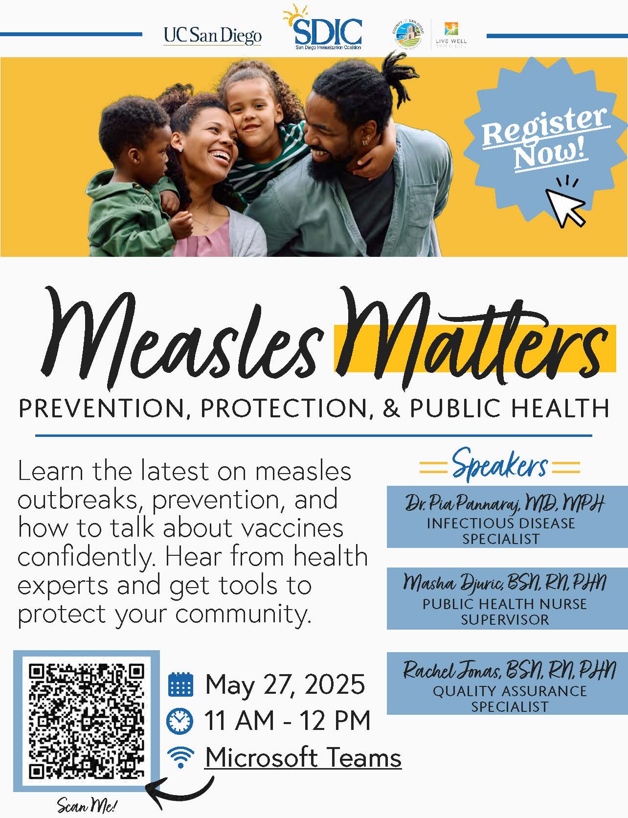 Join us for an engaging and informative webinar focused on measles and what it means for our communities. Whether you're a healthcare provider, community advocate, or just want to stay informed, this session will cover everything from current outbreaks and vaccine facts to practical communication strategies and prevention efforts.