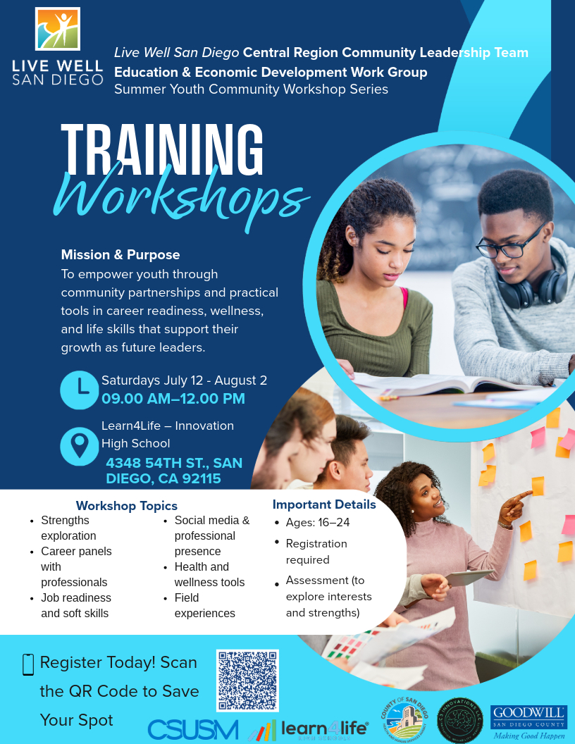 Join the Live Well San Diego Central Region Community Leadership Team, Education and Economic Development Workgroup Summer Job Readiness Workshop Series!