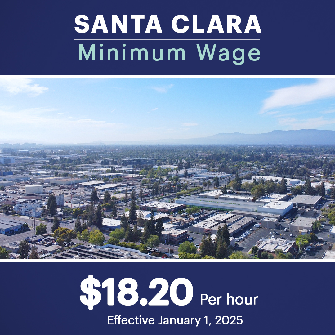 Starting January 1, 2025, the City of Santa Clara’s minimum wage will increase to $18.20 per hour. Santa Clara employers doing business in Santa Clara will be required to pay each employee who performs at least two hours of work a week at least $18.20 per hour. The City’s minimum wage is adjusted annually based on the regional consumer price index.
