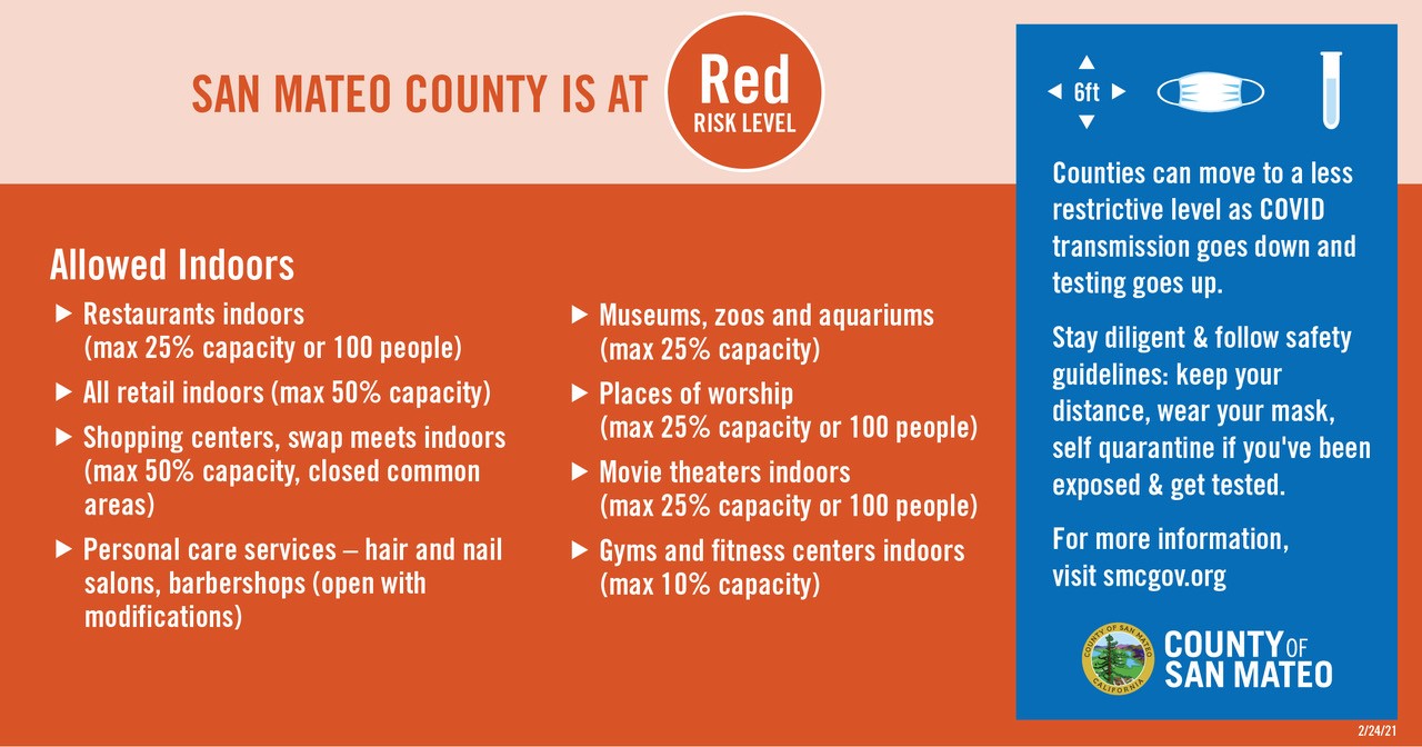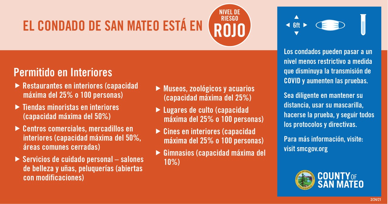 San Mateo County Moves to Red Tier 2 / NOTICIAS: El Condado de San Mateo Pasa al Nivel 2-Rojo