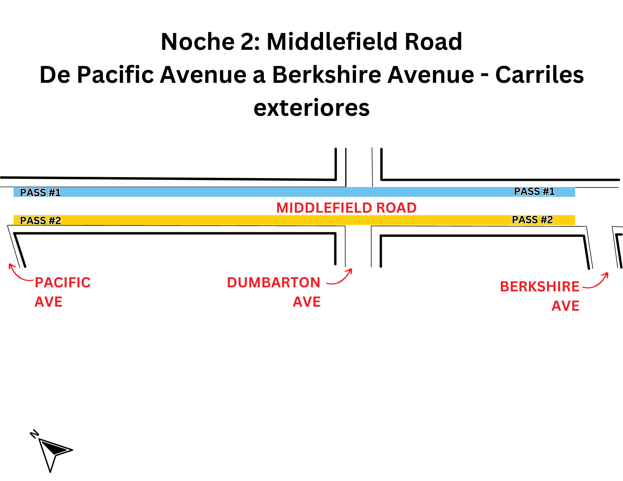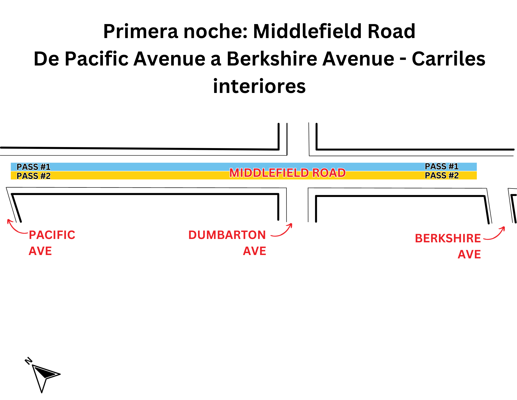 Lunes 27 de noviembre: (Ubicación: carriles centrales con dirección norte y sur de Middlefield Road entre Berkshire Avenue y Pacific Avenue)