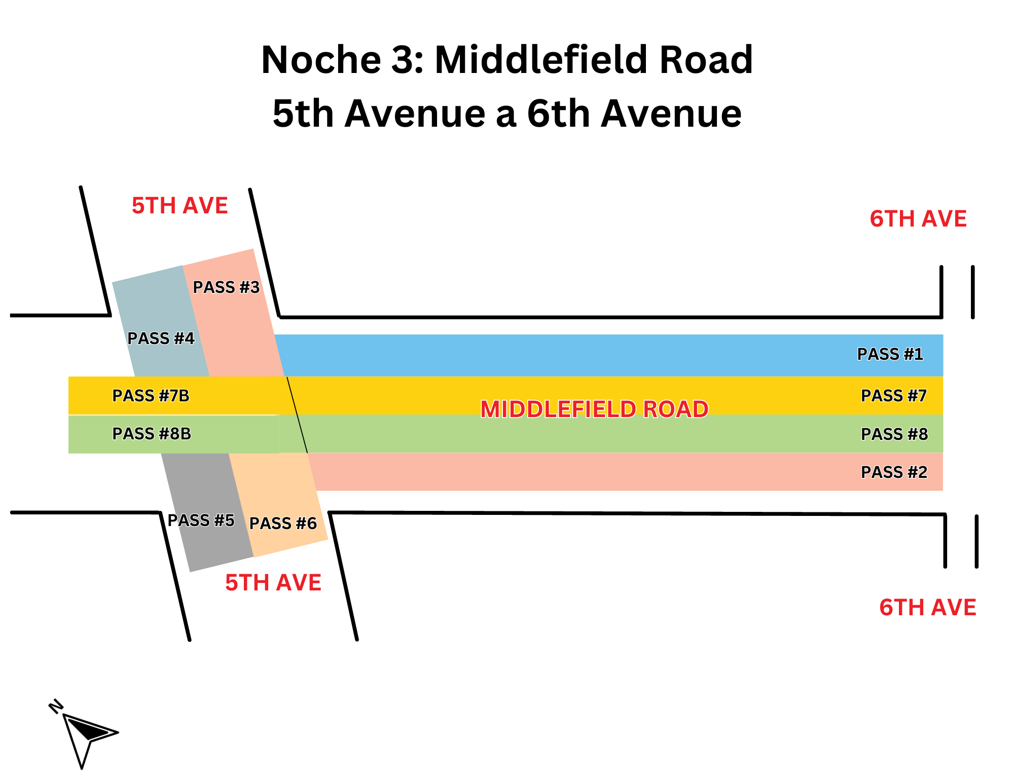 - Se permitirá el acceso a los residentes a lo largo de la Quinta Avenida entre Semicircular Road y Park Road.