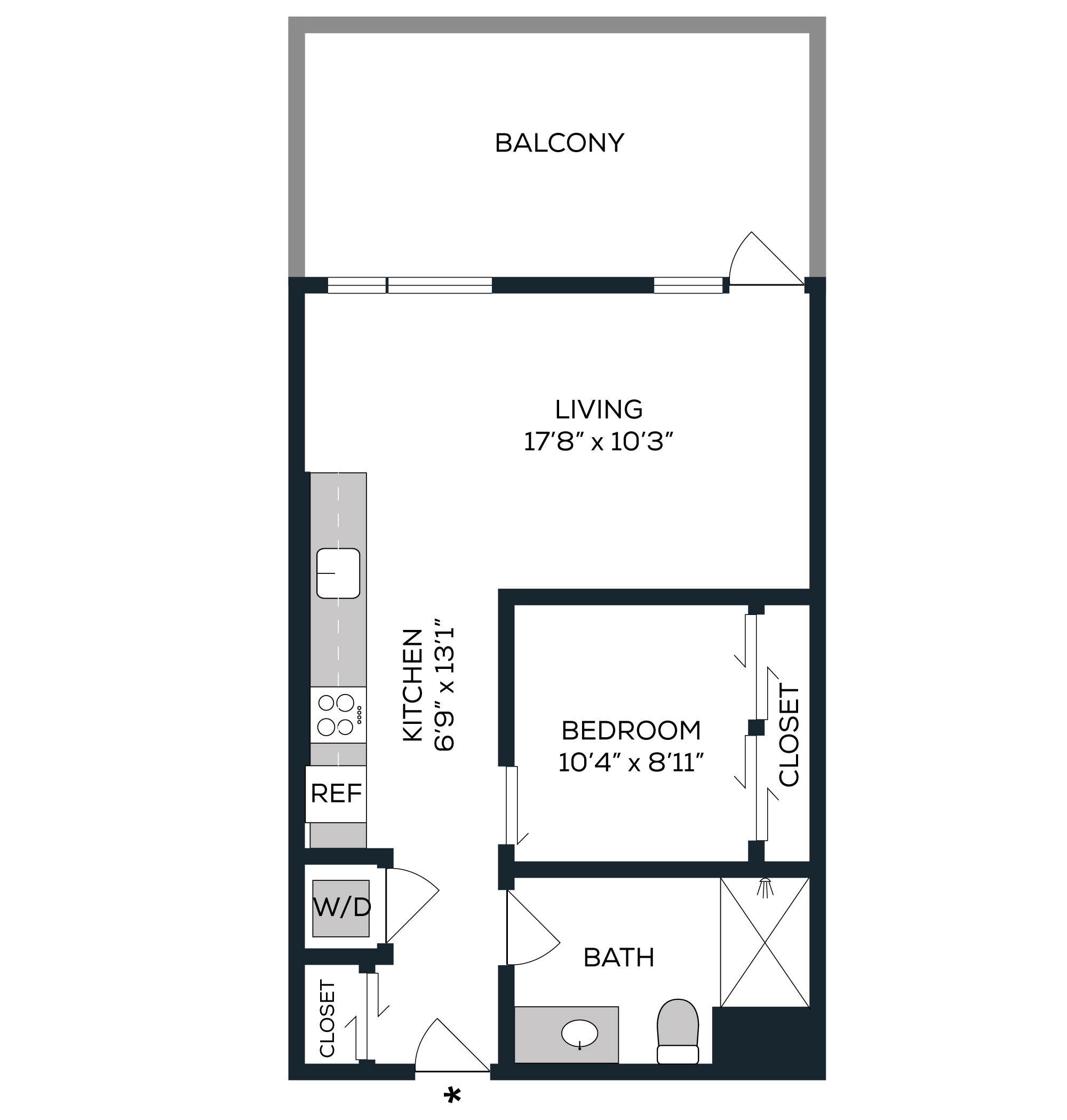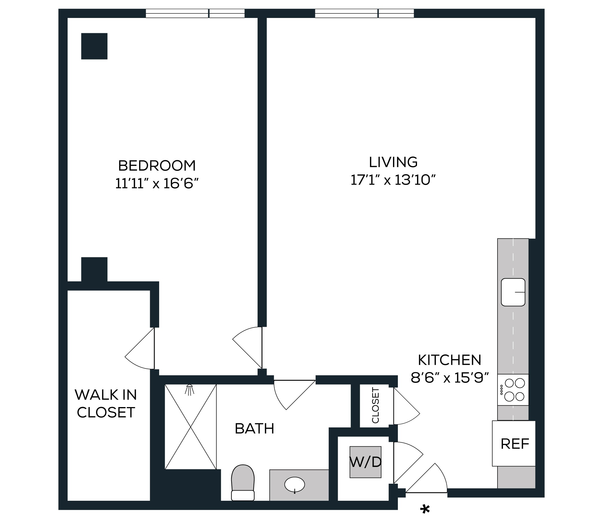- Jr. One Bedroom Apartments: J1 Floor Plan, Starting Price: $3,325 per month