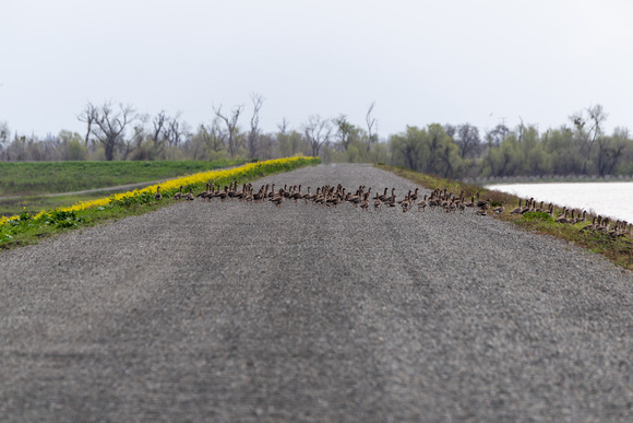 Ducks crossing at the Lower Elkhorn Basin Levee Setback Project site