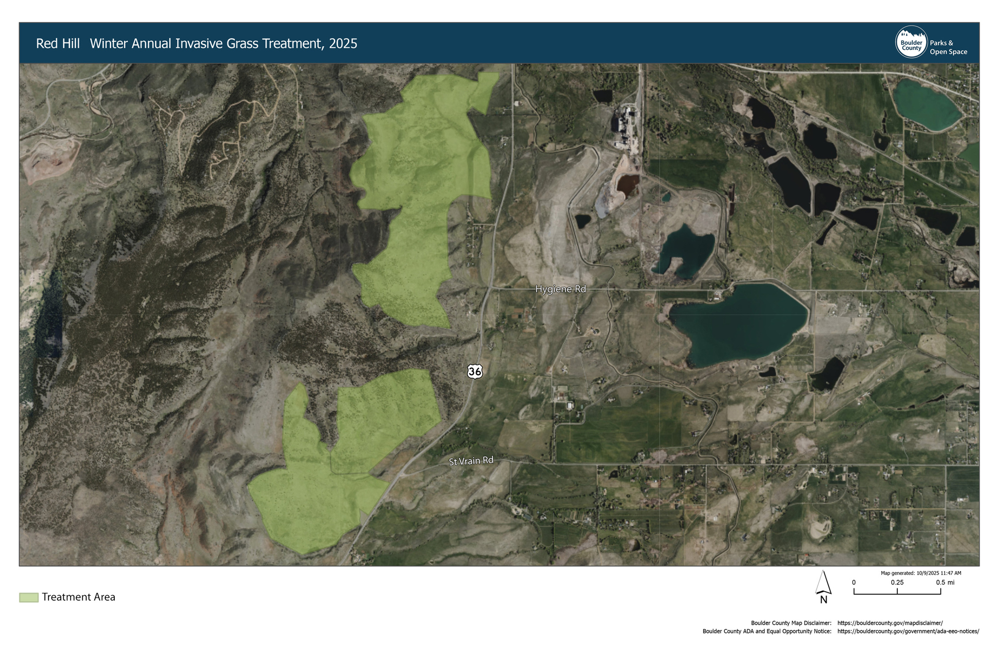 The herbicides being applied are Rejuvra (indaziflam) and Plateau. The operation will be conducted by certified drone operators. Spraying will only occur under safe weather conditions, and all applications will maintain a minimum distance of 50 feet from property boundaries and 660 feet from residences, in full compliance with Boulder County’s Integrated Weed Management Plan.