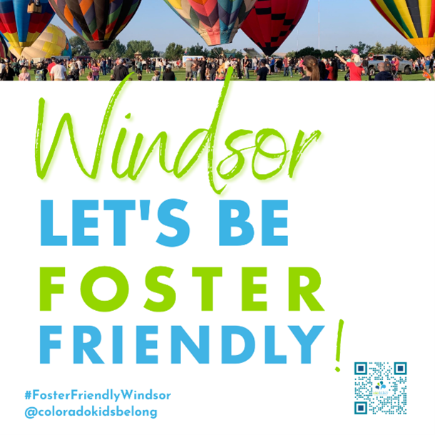 Windsor is gearing up for a campaign with Colorado Kids Belong and others collaborators to encourage the town to become “Foster Friendly.” This effort will launch on Monday, September 11, with Windsor Mayor, Paul Rennemeyer, proclaiming Windsor’s dedication to kids in foster care, and the families that care for them. There's more information below about how YOU can be involved!