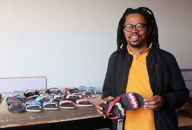 This is the heart and sole of the footwear company ZETU. Reggi Xaba, founder and managing director of the company, headquarters his business in this unassuming space, filled with scraps of leather, design concepts and shelves of shoes.
