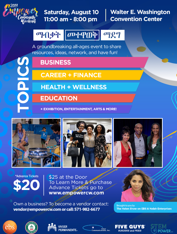This event brings together the largest East African community in the Washington DC metro area. The event provides entertainment, panel discussions, empowering information on education, arts, finance, health & wellness, giveaways and much more. It’s focused on providing resources and family centered activities.
