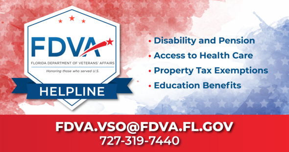If you seek no-cost advice or counseling regarding Veterans’ issues, please contact one of our State Veterans’ Service Officer at (727) 319-7440 or via email at FDVA.VSO@FDVA.FL.GOV. Our team of Hope Navigators is also hard at work connecting Veterans and their families with information and resources to improve their quality of life. Contact one of our Hope Navigators today at HopeNavigators@fdva.fl.gov or call (833) GET-HOPE.