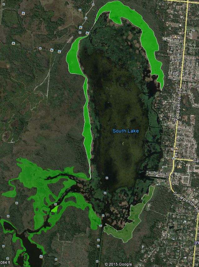 The Florida Fish and Wildlife Conservation Commission (FWC) will treat cattails in South Lake in northern Brevard County during the week of June 22, weather permitting. The FWC’s Invasive Plant Management Section will treat 300 acres of cattails by helicopter; please see shaded green areas on attached map.