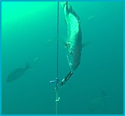 Inverted hooks work similarly to mouth clamp devices, but are inserted through the hole made by the hook (view Fish Saver and Shelton inverted hook videos on the FWC Saltwater Fishing YouTube channel). Once the fish is deep enough to reverse the effects of barotrauma, the angler reels in the line and the fish swims away.