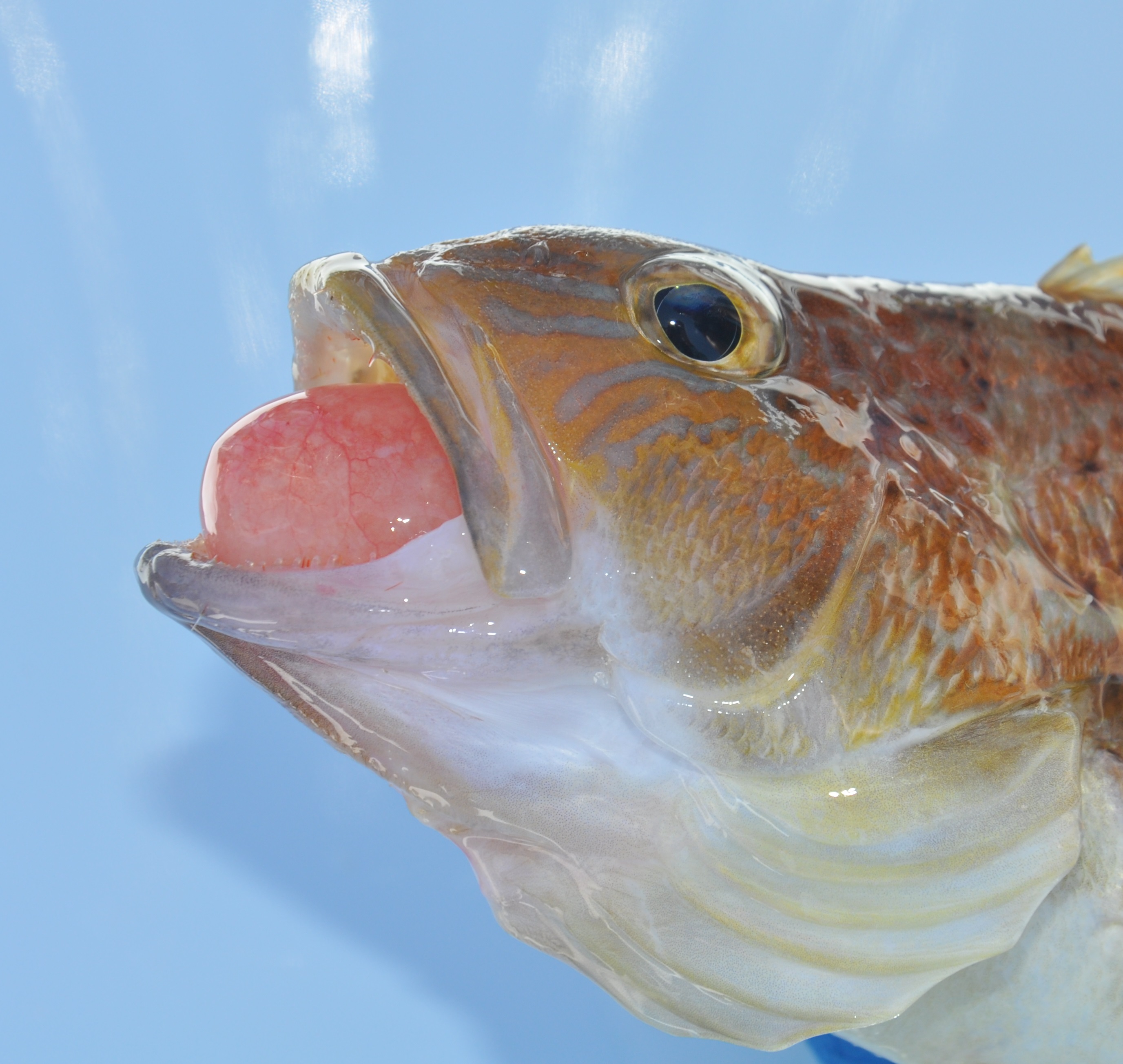 If my catch has signs of barotrauma, I will need to take some specific steps before returning it to the water. Bulging eyes, a bloated belly, distended intestines and stomach protruding from the mouth are all signs of barotrauma, which occurs when fish with a swim bladder are pulled up from deep water (typically depths greater than 50 feet). The change in pressure can make gases in the swim bladder expand and, in some cases, cause it to burst. When a fish suffering from barotrauma is released, it is unable to swim back down to capture depth, making it difficult for the fish to survive the elements and avoid predators.