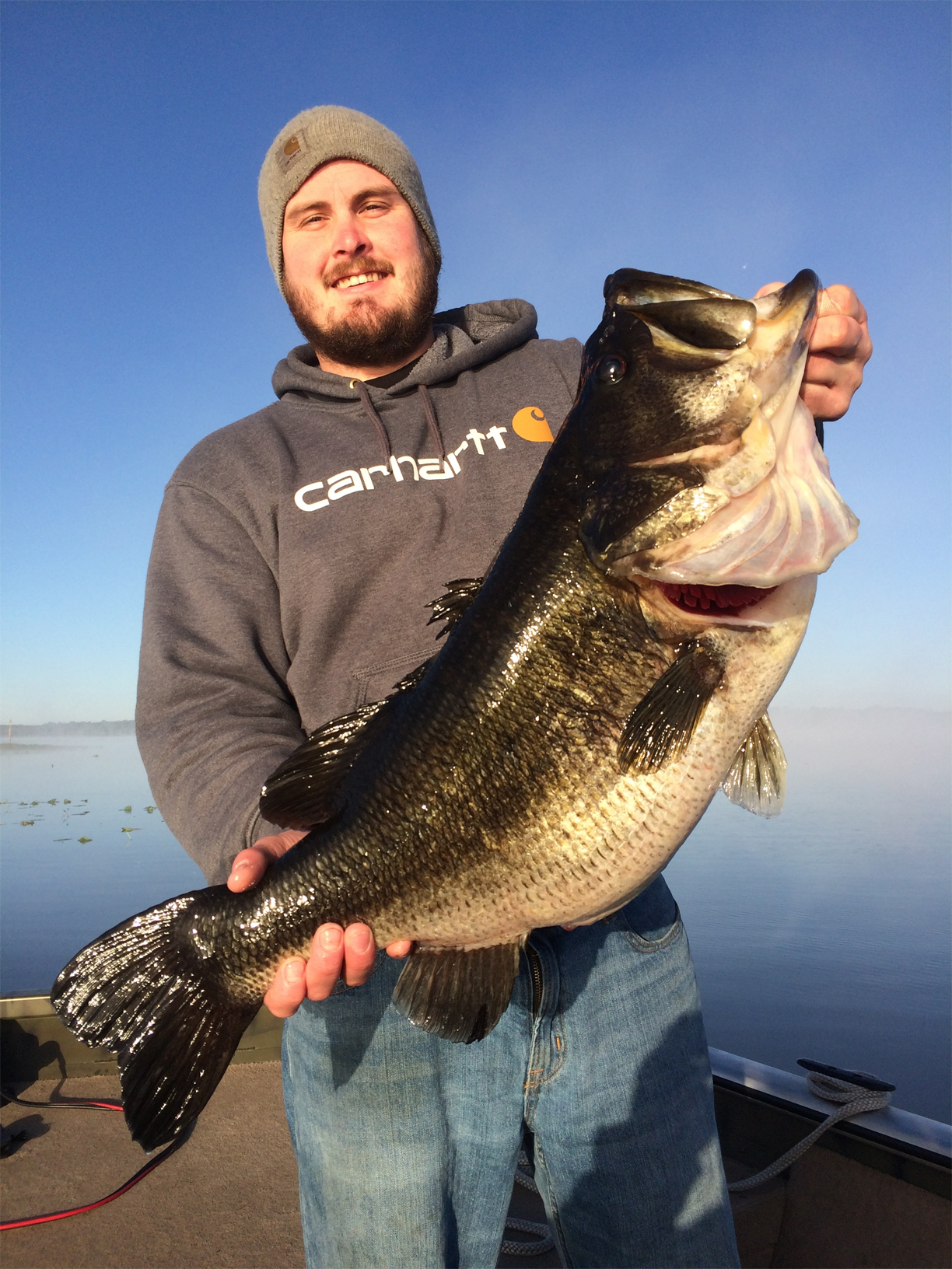 Dewight “Richie” Whitmore, 27, from Ringgold, Georgia, caught, documented and released a 14-pound, 1-ounce Florida largemouth bass at Rodman Reservoir on Martin Luther King Day. Whitmore, fishing with Georgia friend Josh Broome and Florida fishing guide Sean Rush, was using live shiners when they laid into the behemoth around 8:30 in the morning.