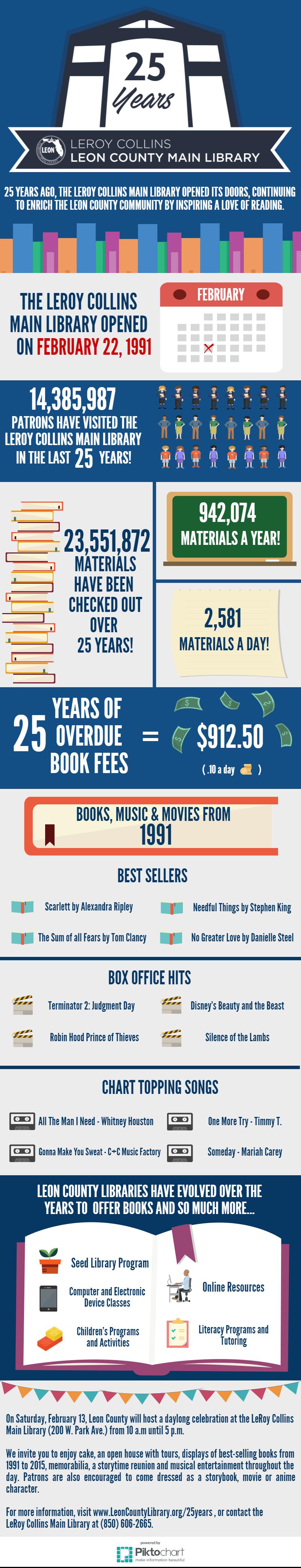 A schedule of events and complete list of the 25th Anniversary Celebration activities is available at www.LeonCountyLibrary.org/25years .