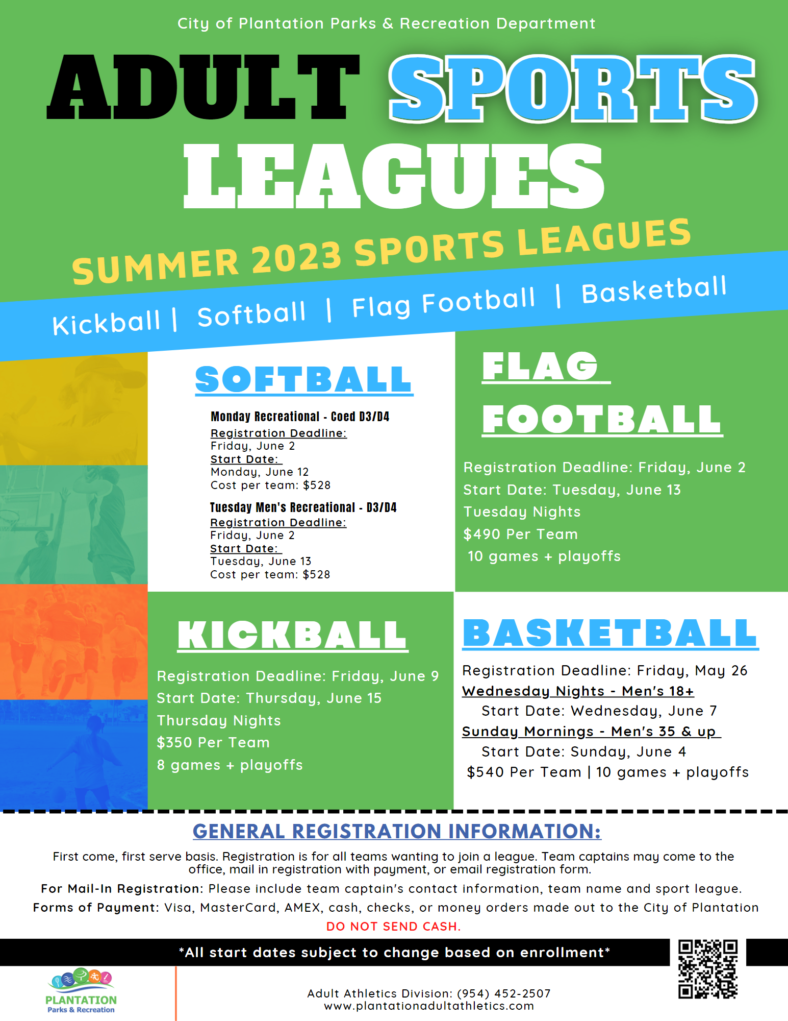 Gather a team and sign up for any of our upcoming adult sports for the summer!