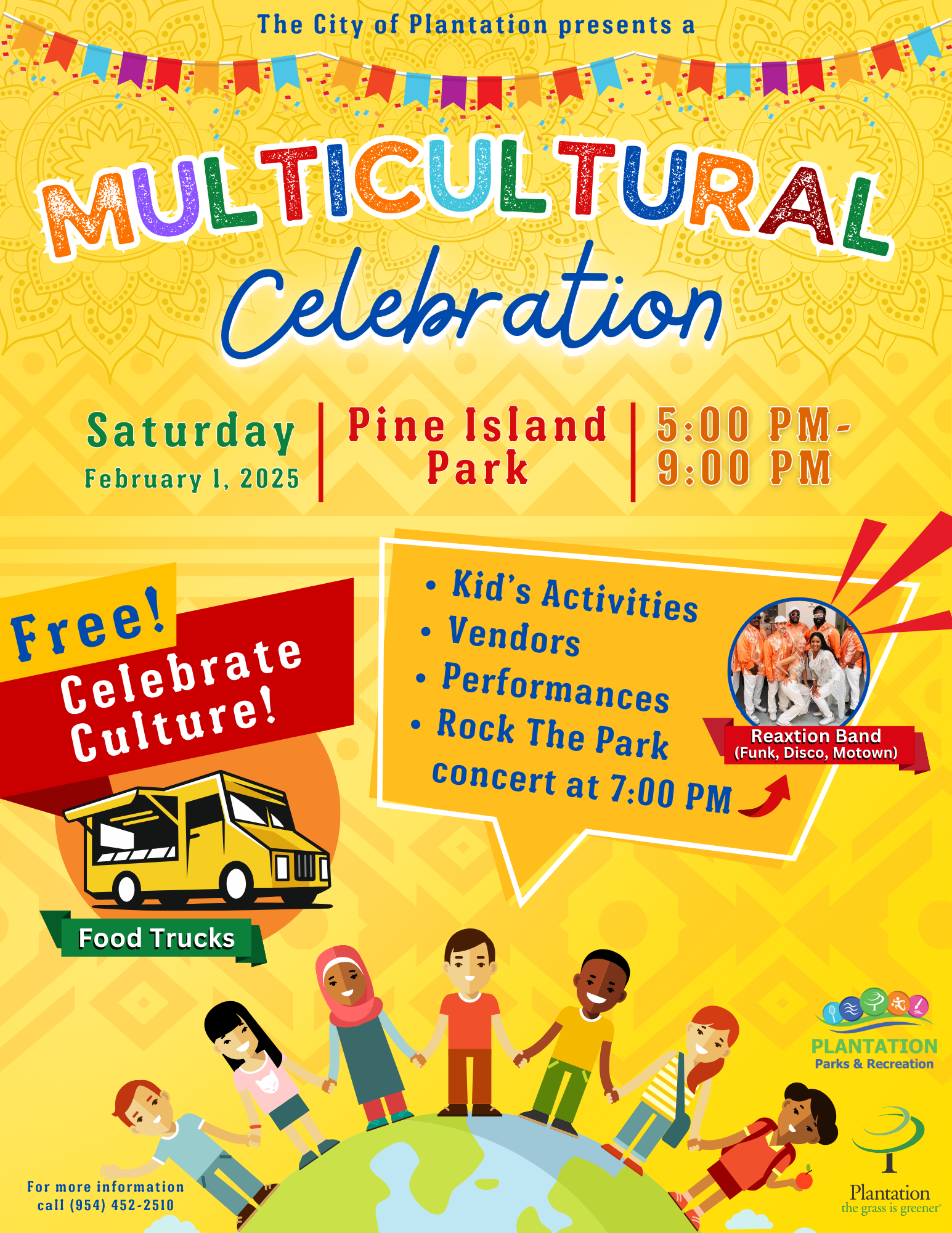 5 p.m. Saturday, Feb. 1: Multicultural Celebration followed by the monthly Rock the Park Concert at Pine Island Park.