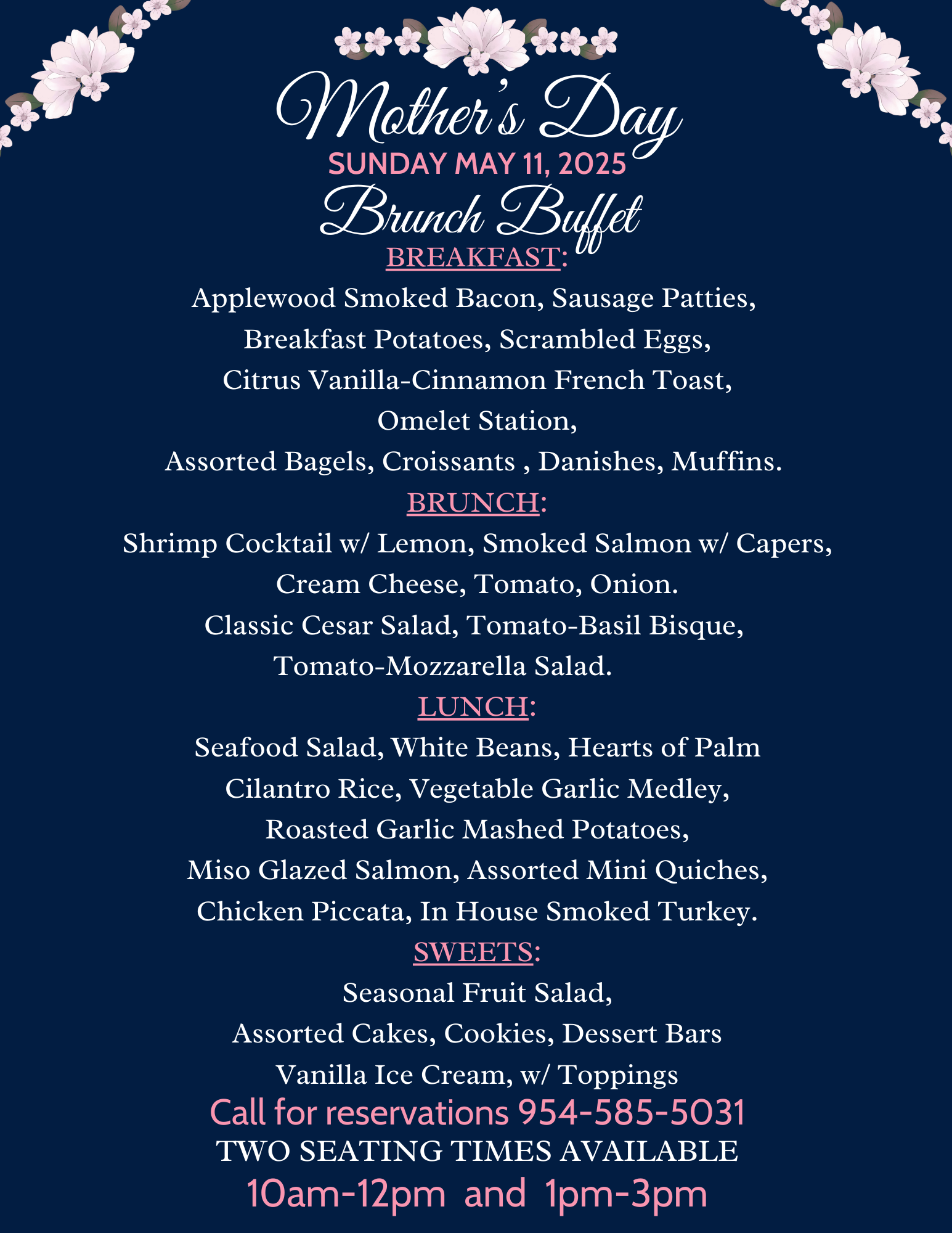 Two seating times: 11 AM & 1:30 PM