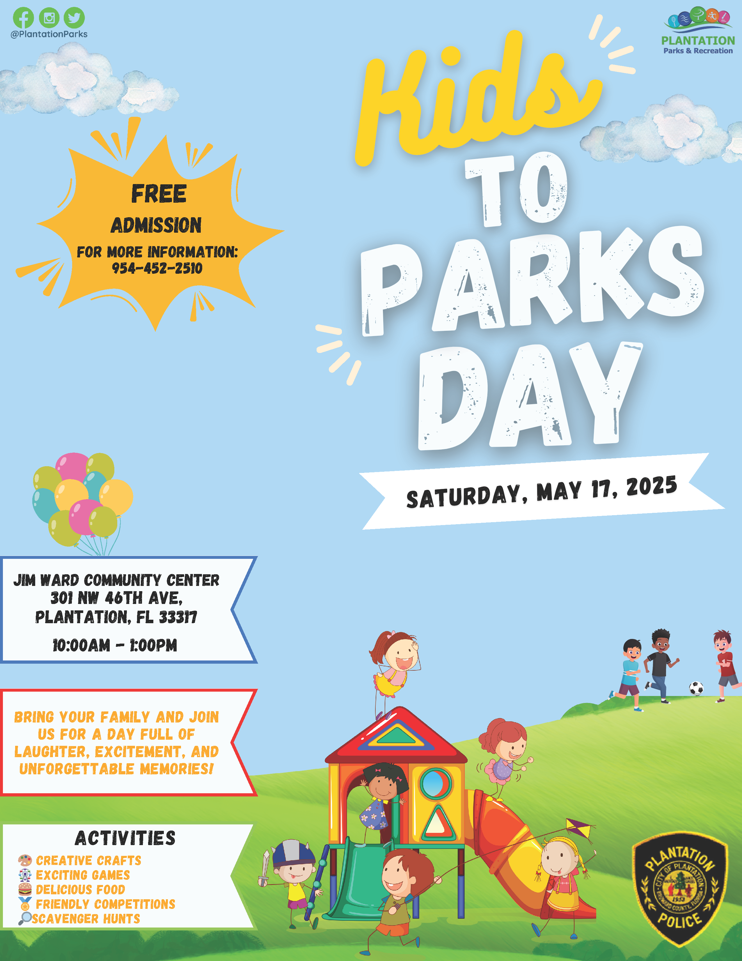 May 17: Kids to Parks Day from 10 a.m. - 1 p.m. at Jim Ward Community Center.