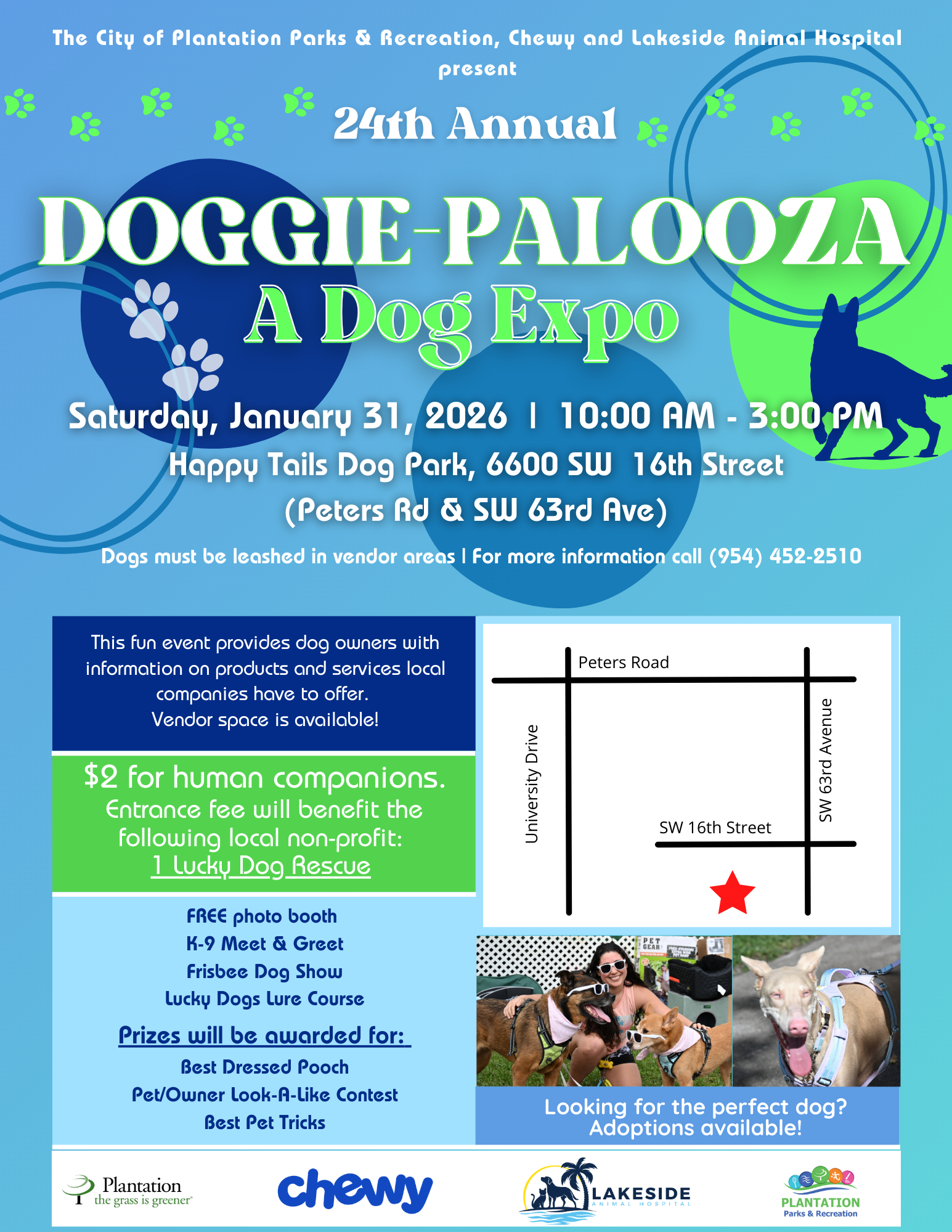 January 31: Doggie-Palooza from 10 a.m. to 3 p.m. at Happy Tails Dog Park. The expo will collect an entrance fee of $2 per human that will be donated to a local non-profit (dogs enter free). Local vendors, dog show, contests and more.