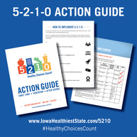 You may have heard of 5-2-1-0, but are not sure how to get started. The Iowa Healthiest State Initiative has created a 5-2-1-0 Action Guide to help go through the process, help assess your site and provide the resources and tools to create and implement an action plan to meet your unique goals.