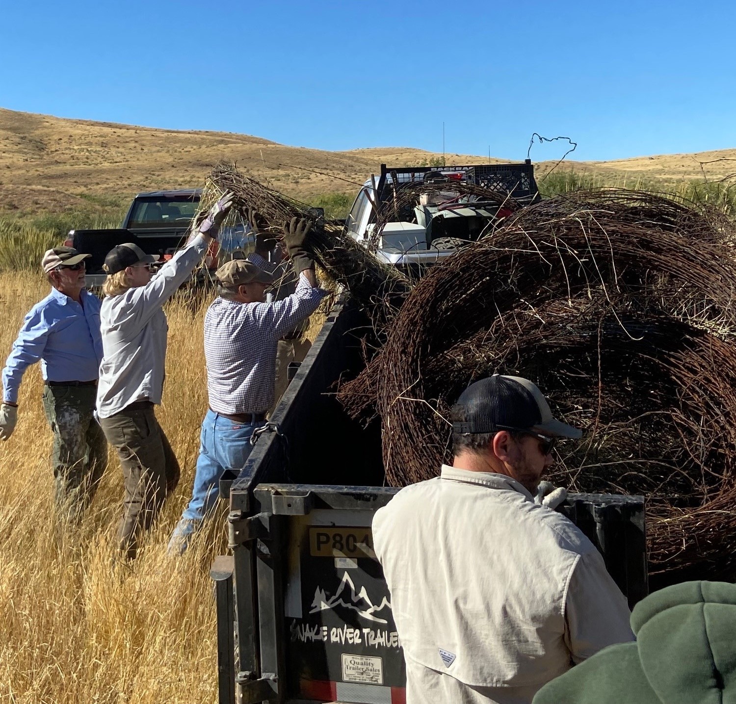 Volunteers from Pheasants Forever, Quail Forever, Mule Deer Foundation, Fish and Game and the public joined IDL to remove nearly 2,300 pounds of old down fence from the Danskin area of the Southwest Supervisory Area.