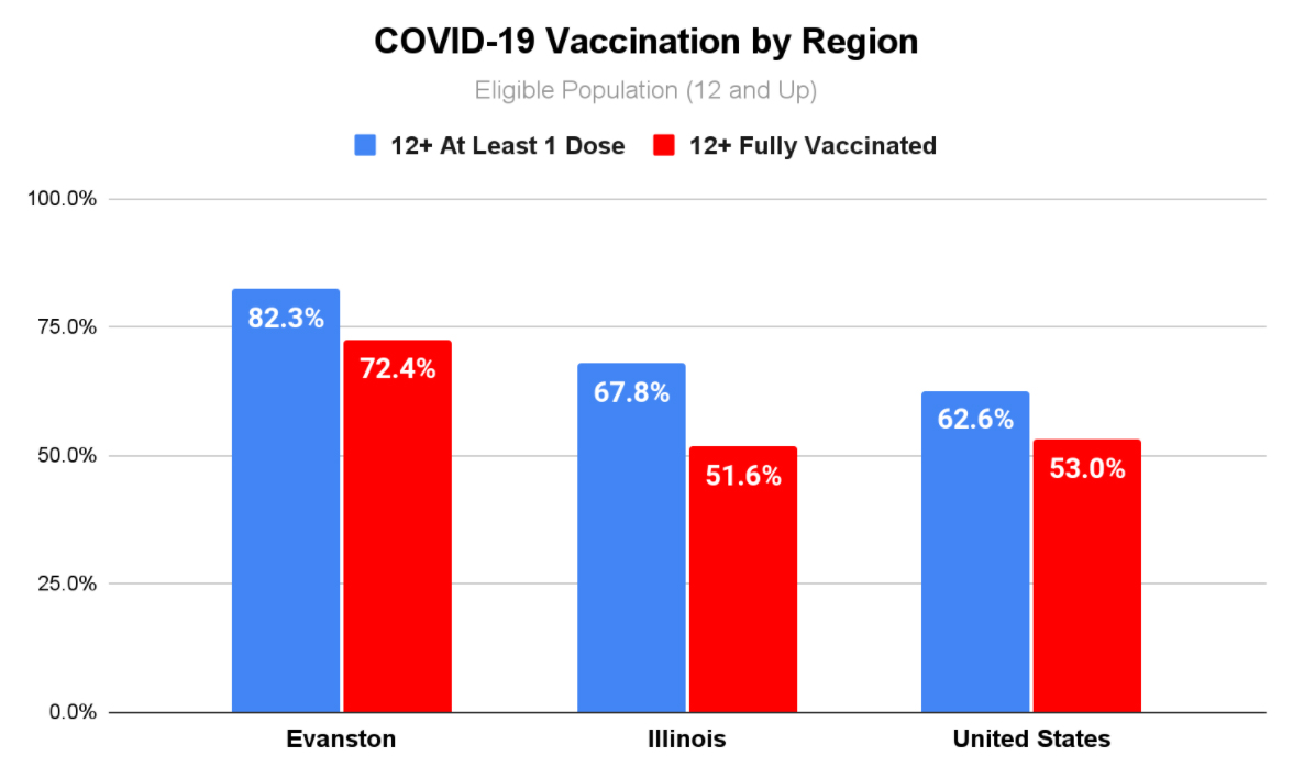 As of June 28, approximately 83 percent of Evanston residents 12 and older have received at least one vaccine dose, and 76 percent are fully vaccinated.
