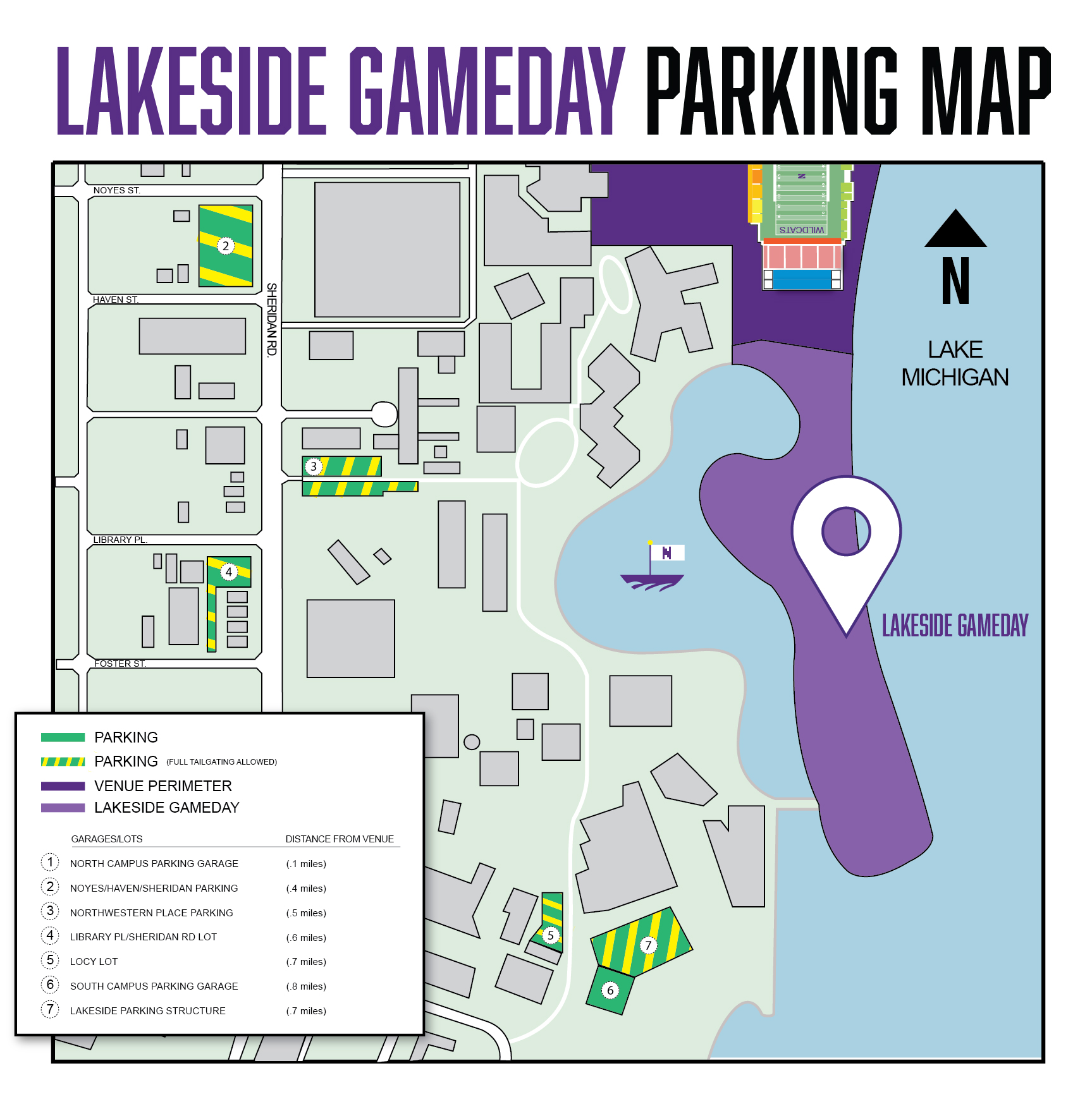 The Northwestern University property gameday lots require passes bought from Northwestern University Sports and cannot be bought on gameday at the lots.