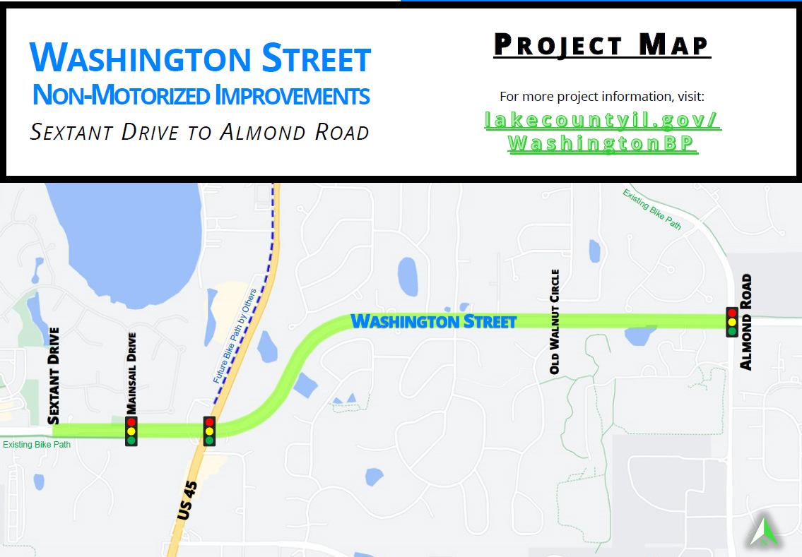 The Lake County Division of Transportation (LCDOT) has launched the final Virtual Public Forum for the Washington Street Bike Path Project. The public is invited to learn more about the project, see the proposed improvements, and submit comments/concerns at lakecountyil.gov/WashingtonBP.