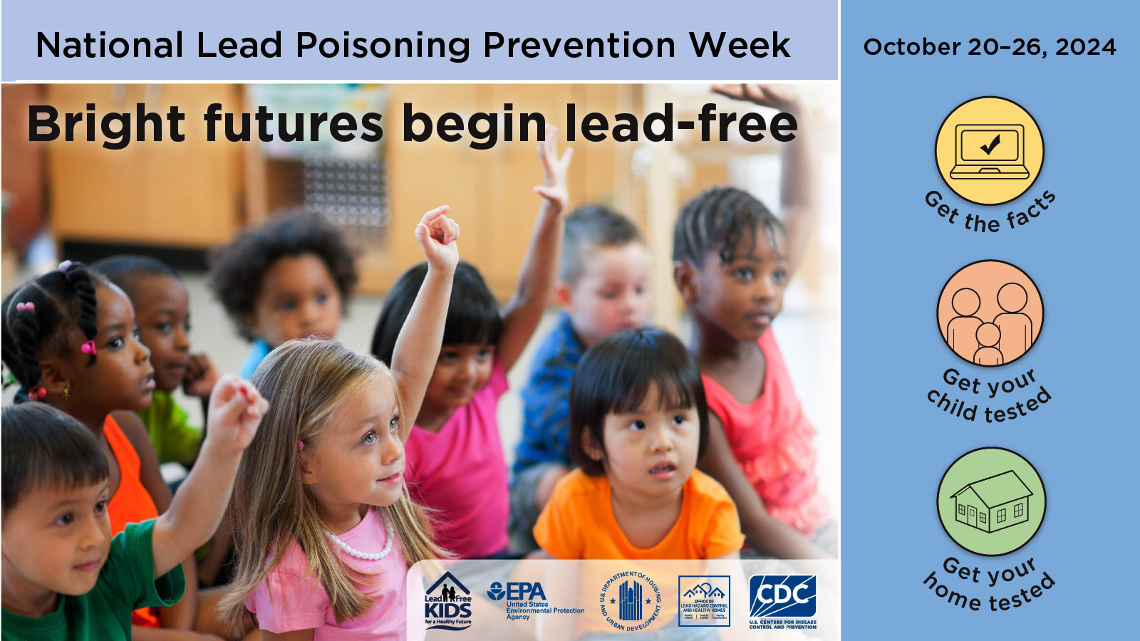 National Lead Poisoning Prevention Week, October 20–26, 2024, was established to increase lead poisoning prevention awareness in the hopes of reducing childhood lead exposure. This year’s theme is "Bright futures begin lead-free." No safe blood level in children has been identified. Children six years old and under are especially vulnerable because their bodies are still developing and growing rapidly.