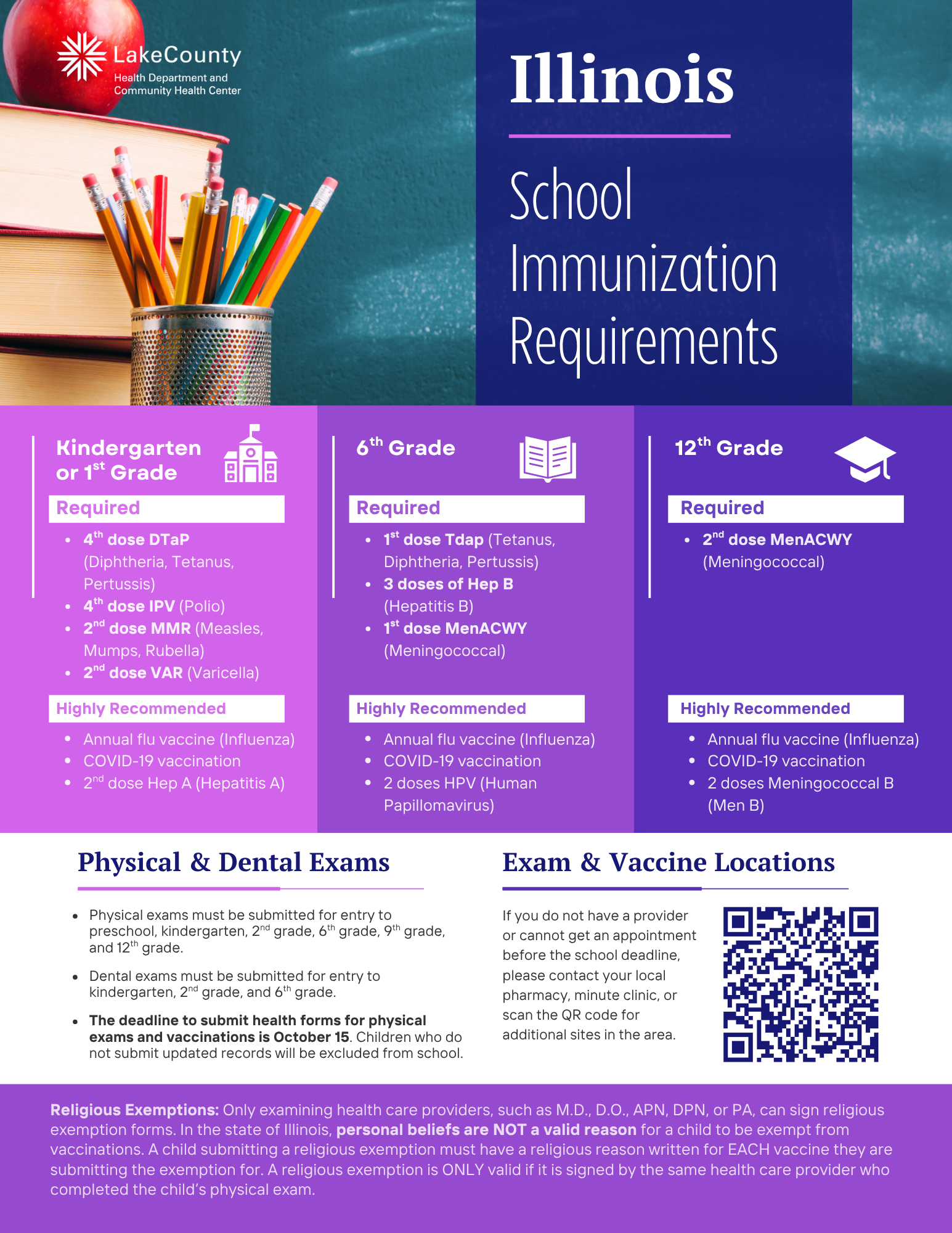 Physical exams must be submitted for entry to preschool, kindergarten, 2nd grade, 6th grade, 9th grade, and 12th grade. Dental exams must be submitted for entry to kindergarten, 2nd grade, and 6th grade.