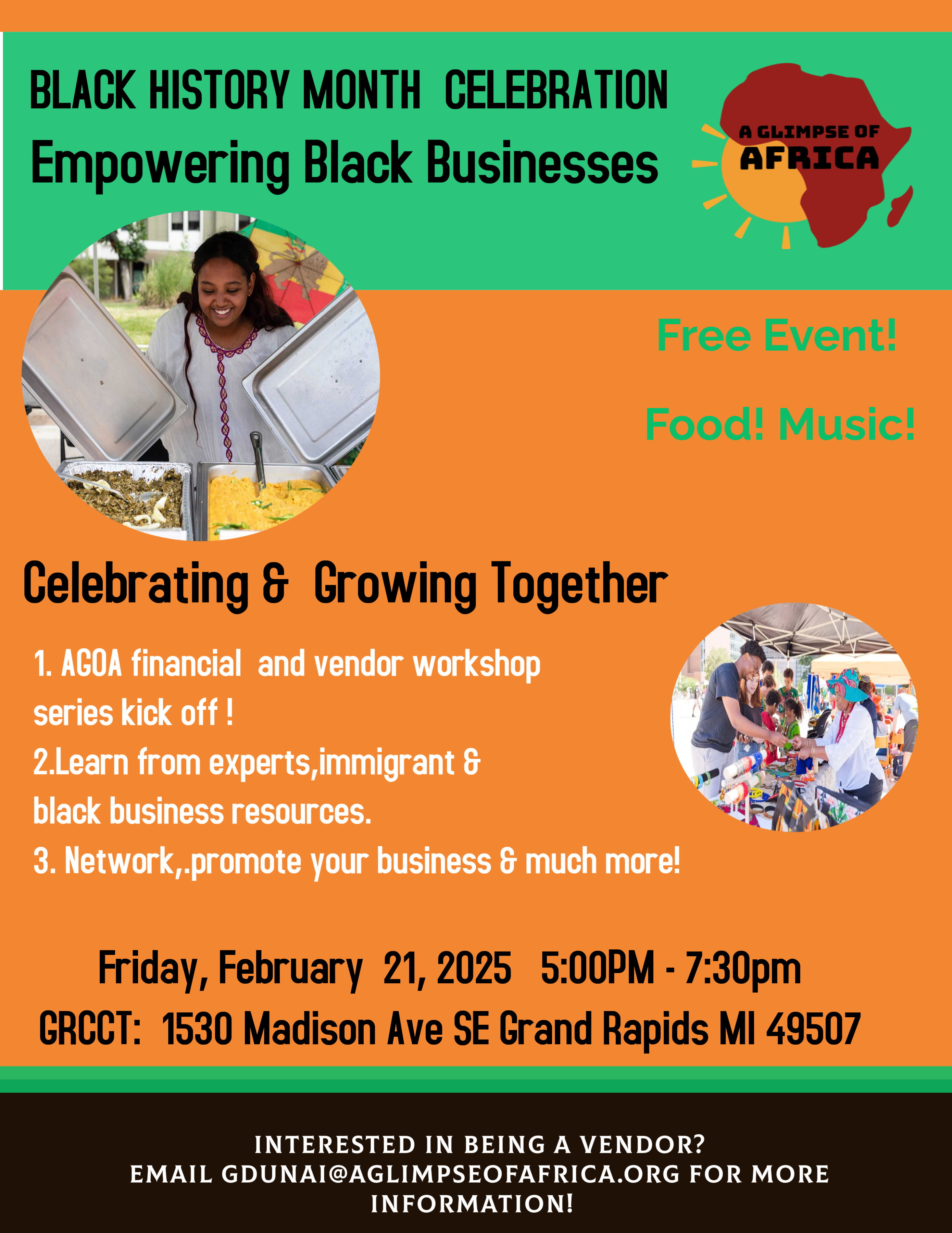 A free celebration of Black History Month with food, music, and community! The event features the kickoff of the AGOA Financial and Vendor Workshop series, offering valuable insights from experts, resources for Black and immigrant businesses, and networking opportunities to promote your business.