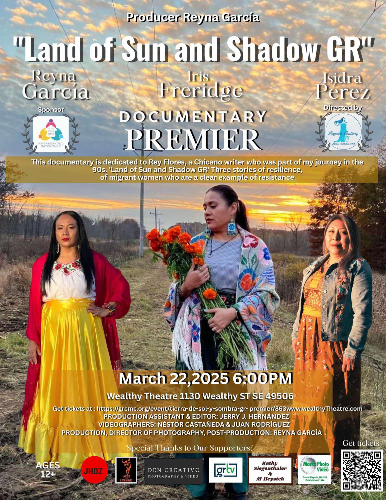 Support Latino filmmakers in your community. ✨ "Land of Sun and Shadow GR," directed and produced by Reyna García, is coming to the big screen. Get ready to be inspired! This documentary weaves three stories of courage and hope, featuring migrant women who exemplify resilience. A tribute to Rey Flores, whose vision continues to light our paths.
