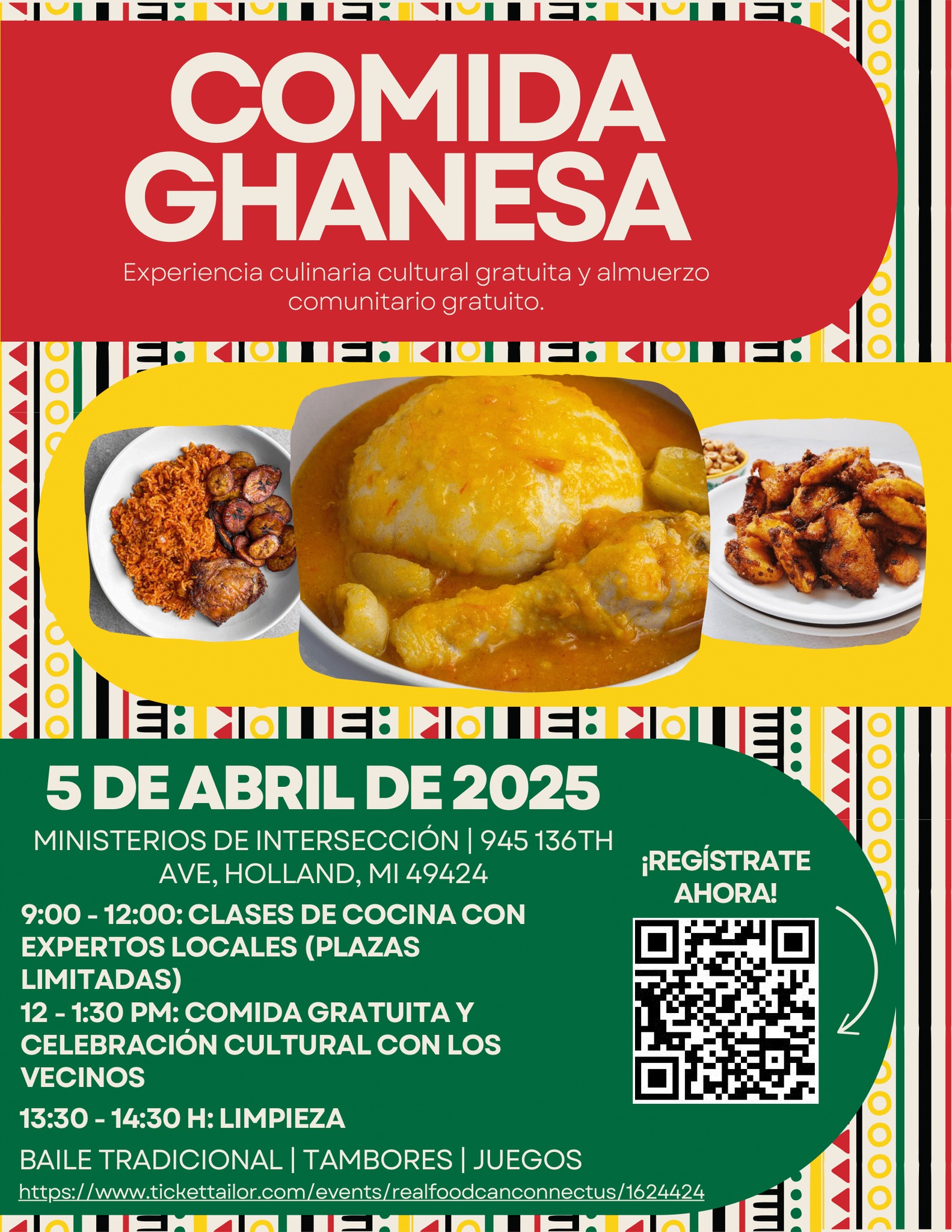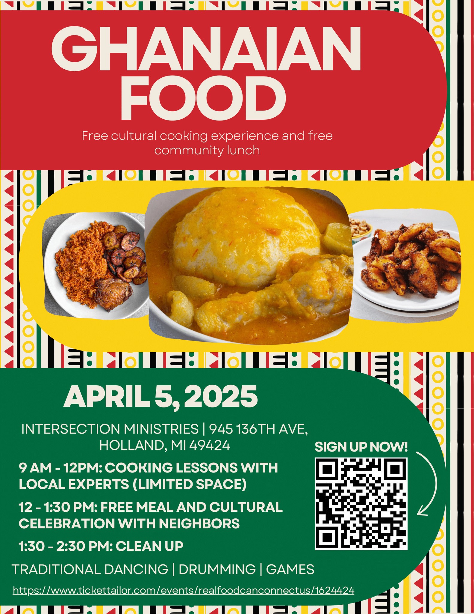 Community members are invited to a free Ghanaian meal and cultural celebration. While the cooking experience is full, attendees can still enjoy traditional dance, drumming, and basic language lessons as part of this immersive event.