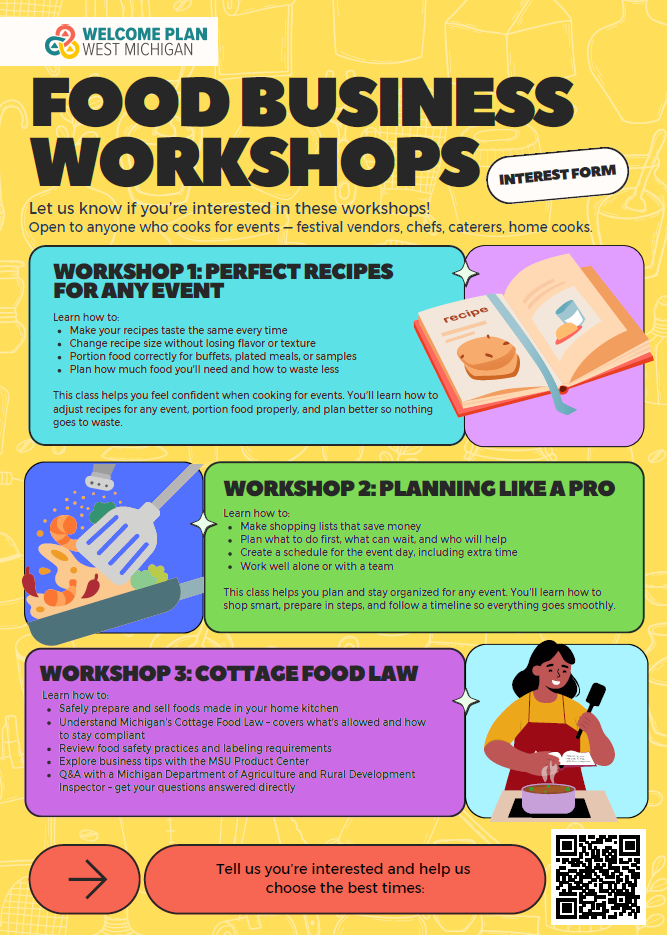 The Welcome Plan invites food businesses, vendors, and caterers to join a future workshop series designed to help you navigate cottage food law, plan like a pro, and perfect recipes for any event. Whether you’re just starting out or looking to refine your craft, these hands-on sessions will give you the tools and confidence to grow your business.