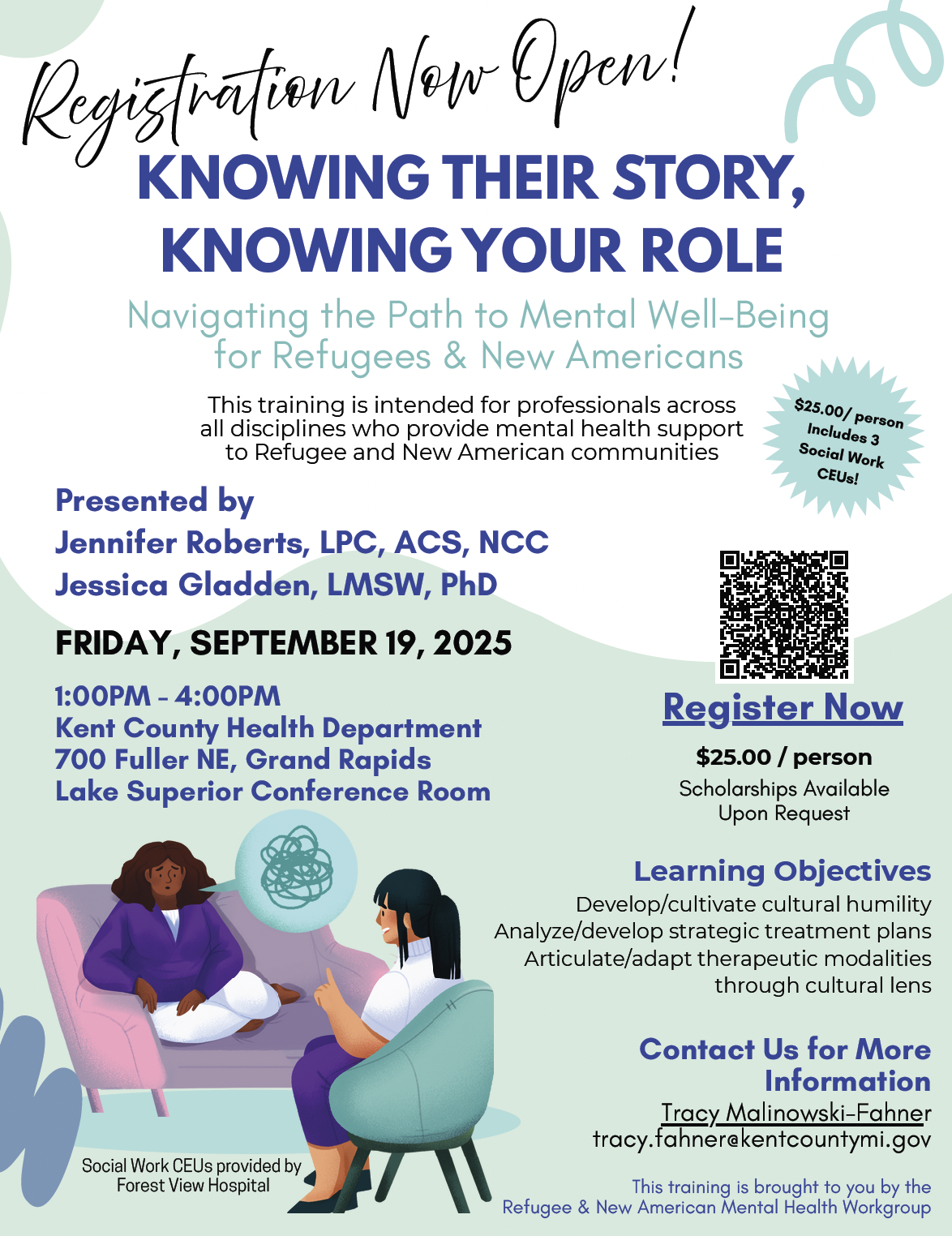 Who should attend: Professionals across disciplines who provide mental health support to Refugee and New American communities.