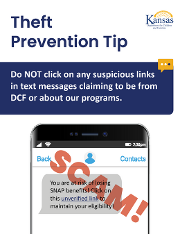 Phishing scams also target EBT accounts. Beware of fake emails, phone calls and text messages that pretend to be from a trusted source, like DCF. Phishing scams try to trick you into clicking an unverified link that goes to the scammer's website with messages like "You are at risk of losing SNAP benefits, click here to maintain your eligibility," or "Your card is loaded with $X in benefits. Activate here."