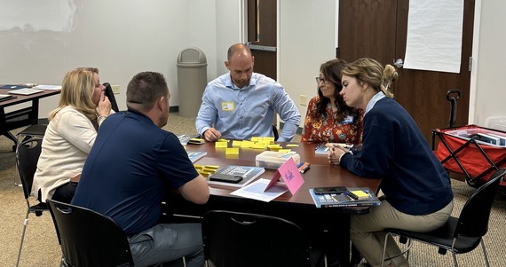 Assistant principals engage in a brainstorming task at the 2024 AP Cohort Kick-Off at the Green River Regional Educational Cooperative.