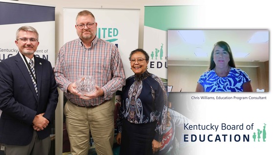 (FRANKFORT, KY) – Chris Williams, an education program consultant with the Kentucky Department of Education’s (KDE’s) Office of Assessment and Accountability, Assessment Communication Branch, received the 2025 Teresa Perry Compassion Award during the Kentucky Board of Education meeting on June 5.