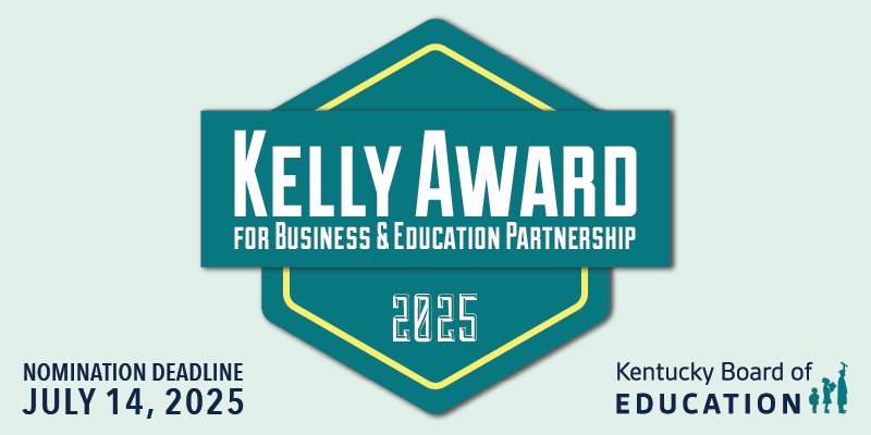(FRANKFORT, KY) - The Kentucky Board of Education (KBE) is accepting nominations for the 2025 Kelly Award for Business and Education Partnership.