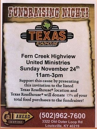 Food Donations for Fern Creek/Highview United Ministries will be accepted to help feed the needy.