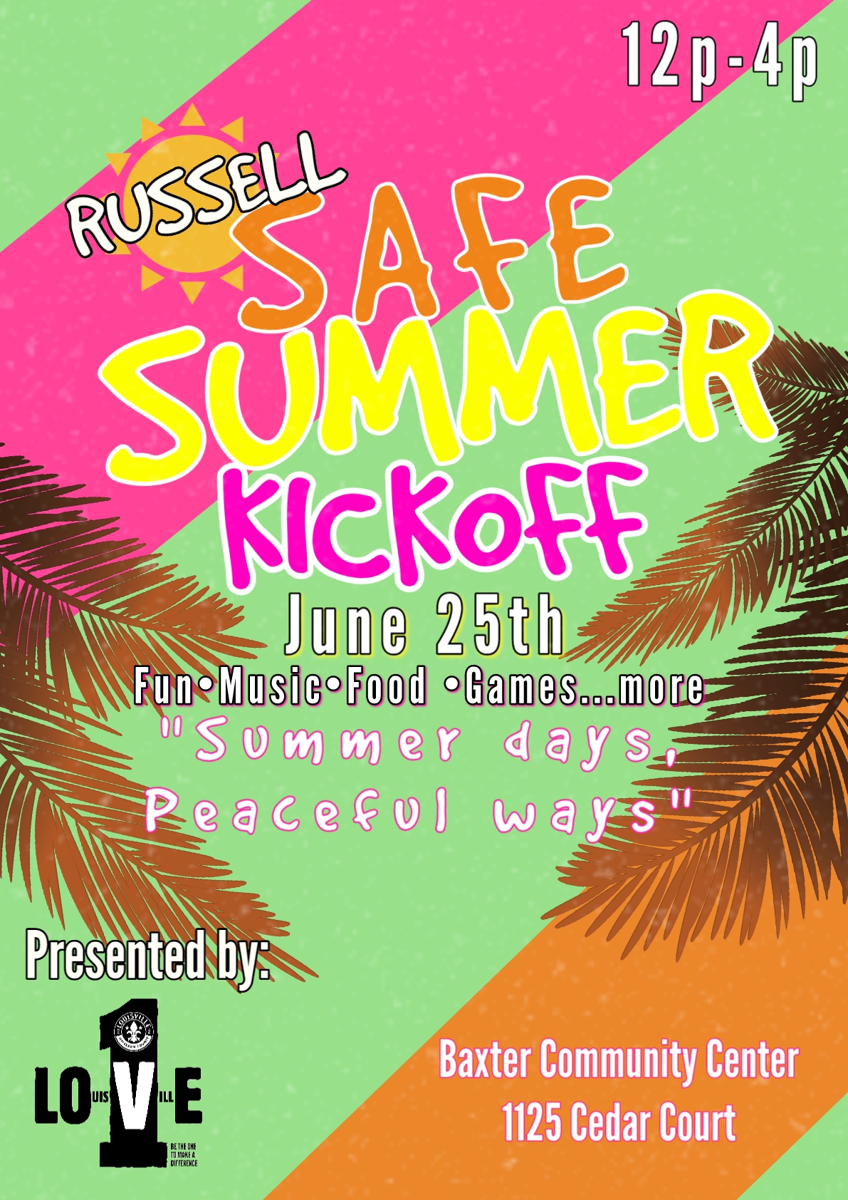 Join Louisville Metro Office of Safe and Healthy Neighborhoods in Russell and Smoketown for their Safe Summer Kick-off June 25th.