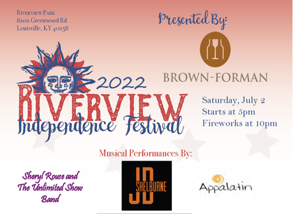 Saturday, July 2, at 5:00pm Riverview Independence Festival at Riverview Park (8202 Greenwood Road)