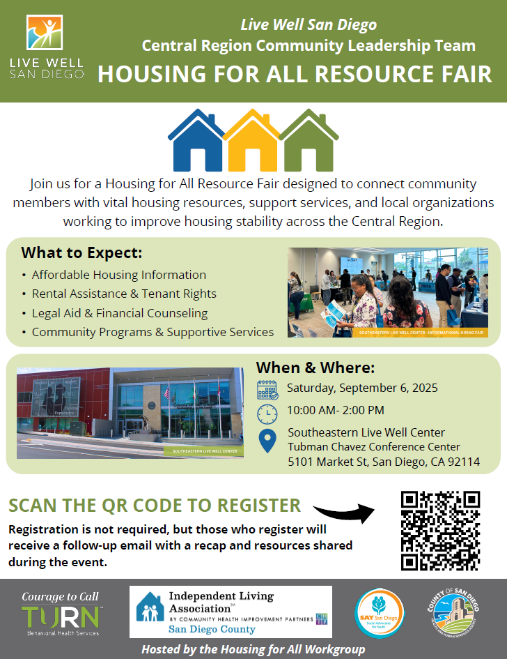 WHERE: Southeastern Live Well Center Tubman Chavez Conference Center | 5101 Market St, San Diego, CA 92114