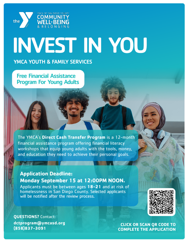 Now accepting interest forms for its second cohort, this 12-month program supports San Diego County young adults (ages 18–21) facing housing instability. Participants receive financial assistance, workshops, housing support, case management, and resource referrals. Eligibility: ages 18–21, San Diego County residents, at risk of housing instability (not currently homeless). A new interest form is required, even if previously submitted. Current Cohort 1 participants are ineligible.