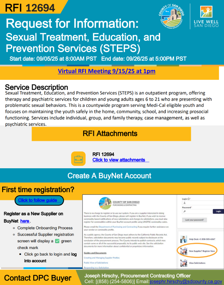 NEW! Request for Information: Sexual Treatment, Education, and Prevention Services (STEPS)