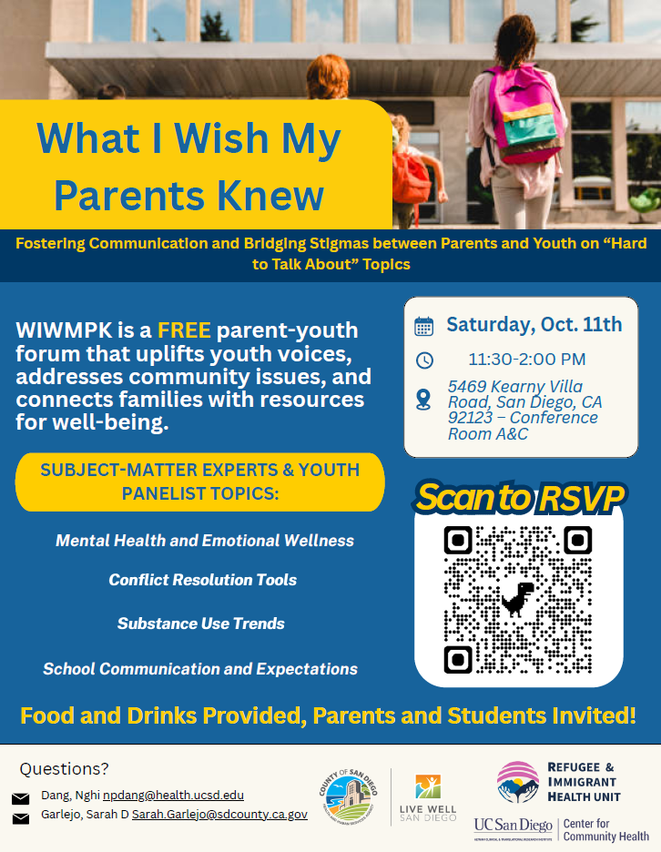 Please forward to colleagues, staff, partners, and community members as you see fit. New subscribers can sign up here. If you have any questions on the content of this newsletter or have a San Diego County community event you would like to share with us, please email HHSA.communities@sdcounty.ca.gov.