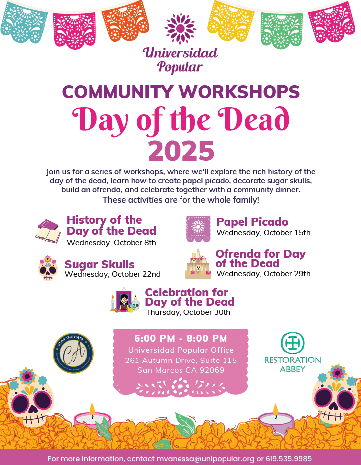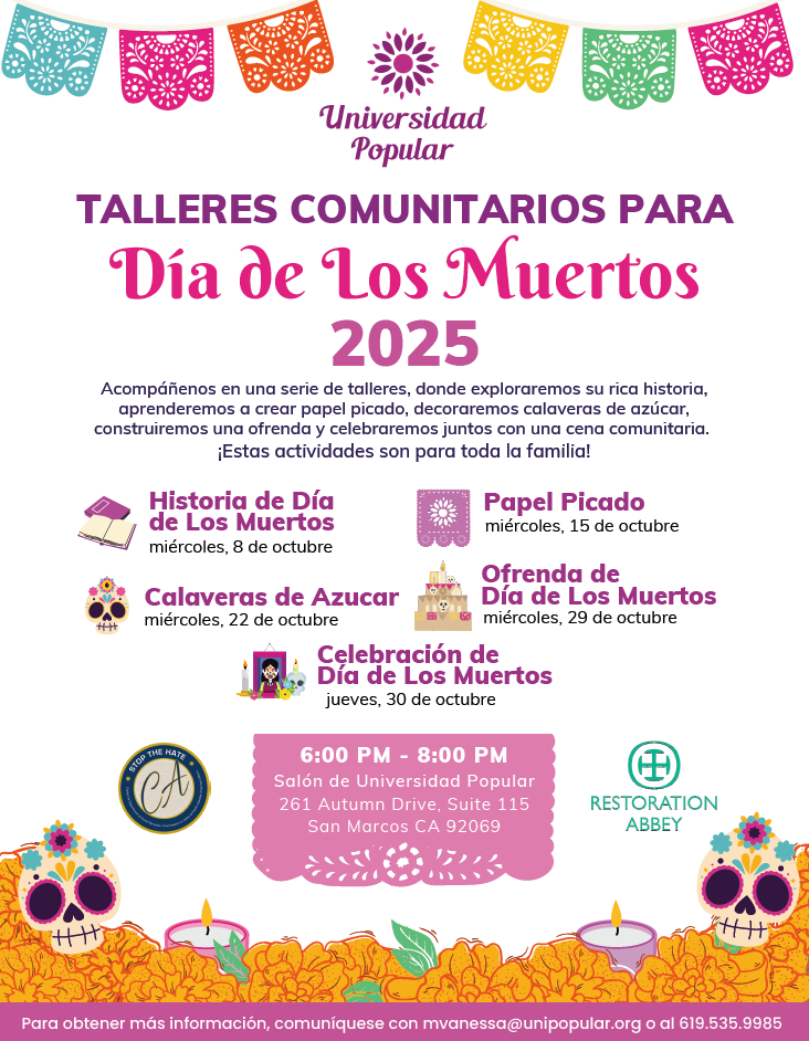 WHERE: Universidad Popular Office | 261 Autumn Drive, Suite 115 San Marcos, CA 92069