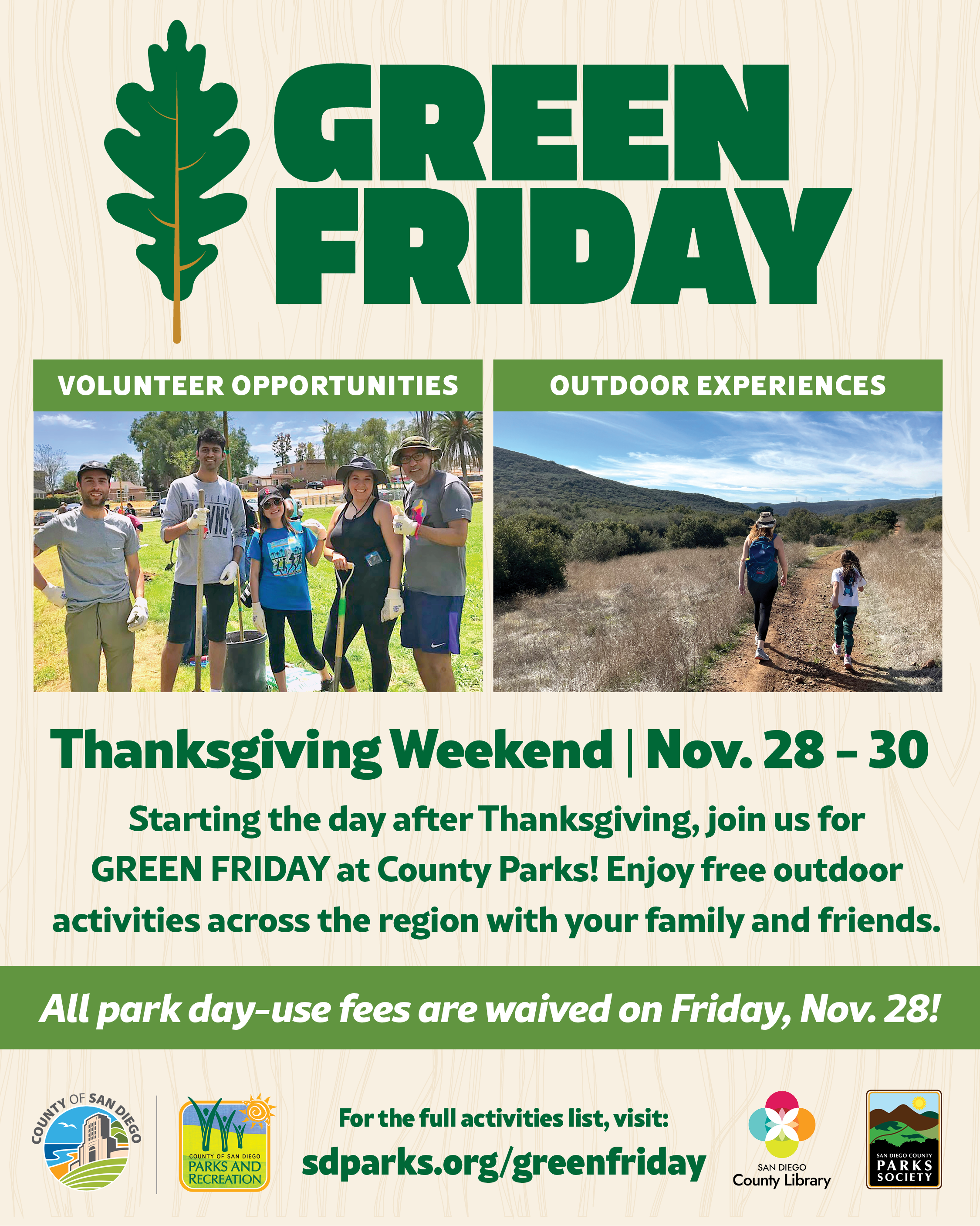 Starting the day after Thanksgiving, join for Green Friday at County Parks! Enjoy free outdoor activities across the region with your family and friends.
