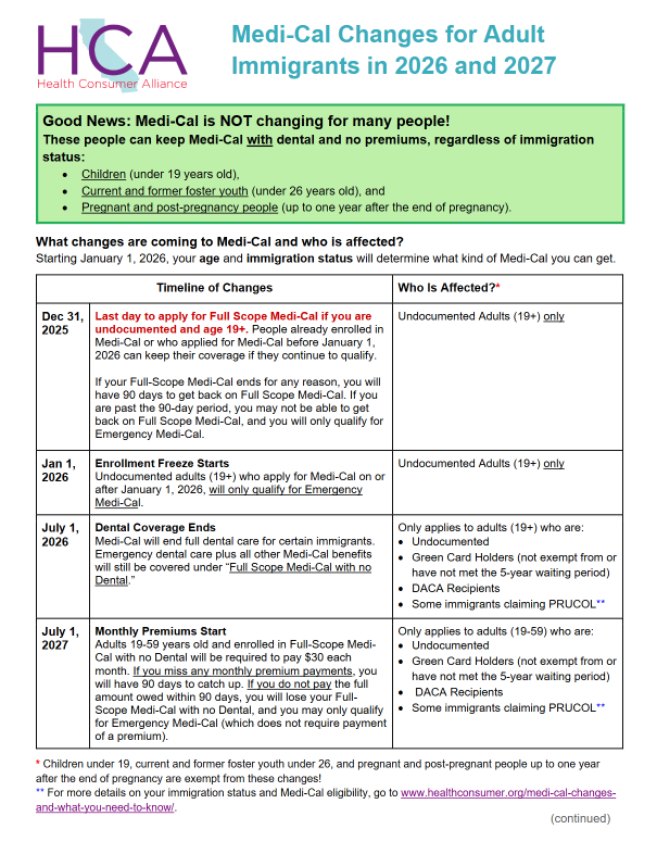 NEW! Health Consumer Alliance (HCA) Medi-Cal Changes for Adult Immigrants in 2026 and 2027